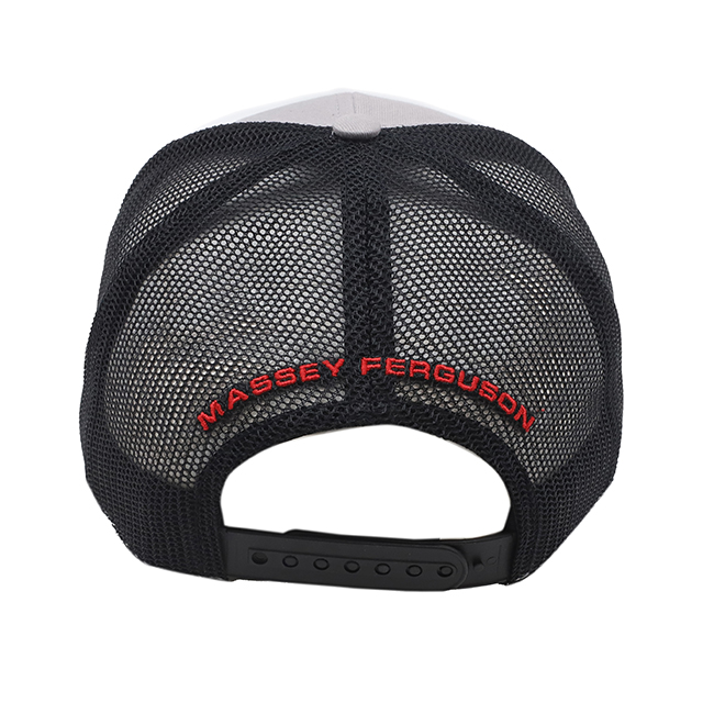 Massey Ferguson stands out with this puff logo hat. Gray structured front with black mesh back. Snap back closure.